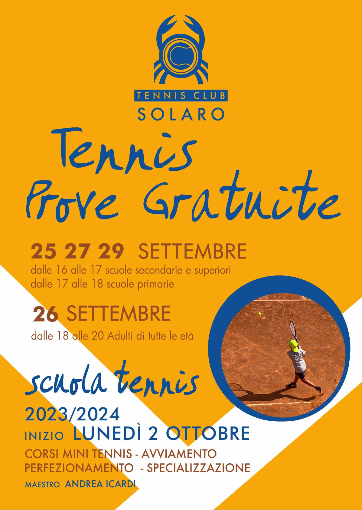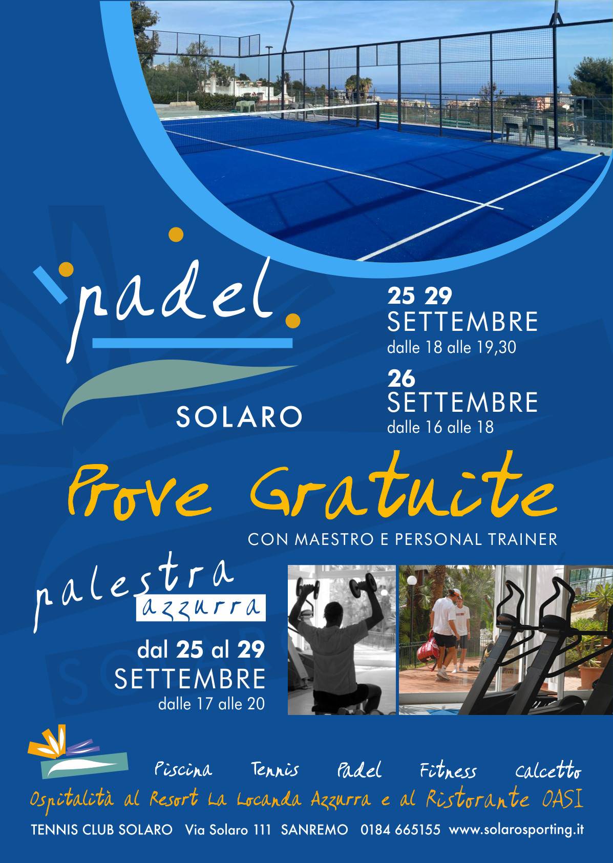 Dal 25 al 29 settembre 2023, il Solaro Sporting di Sanremo organizza una settimana di prove gratuite di tennis, padel e palestra. L'iniziativa è rivolta a bambini, ragazzi e adulti di tutte le età, che vogliono avvicinarsi a queste attività sportive.